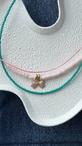 گردنبند زنانه پاپیون ۳ رج صورتی کله غازی ضد حساسیت