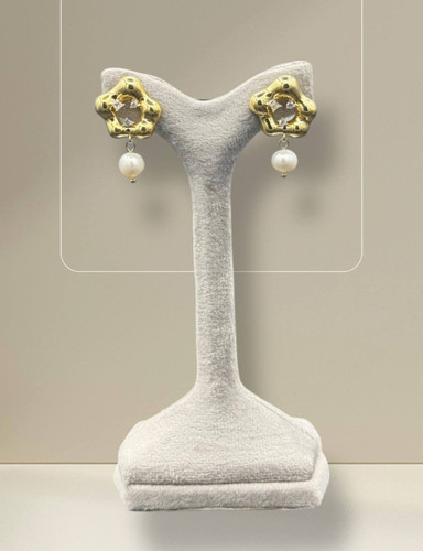 ناموجودگوشواره زنانه شکوفه طلایی با آویز مرواریدی جنس کوپر آبکاری ۳لایه رنگ ثابت ضد حساسیت