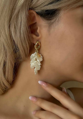 گوشواره زنانه آبکاری رادیوم مدل لایهلایه صدفی با اتصال طلایی