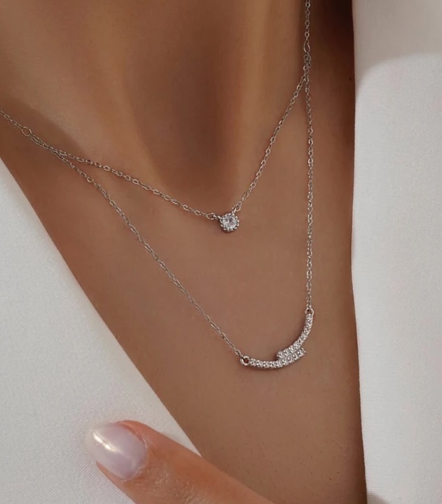 ناموجودگردنبند زنانه لبخند تیفانی نقره ای رنگ ثابت دو رج