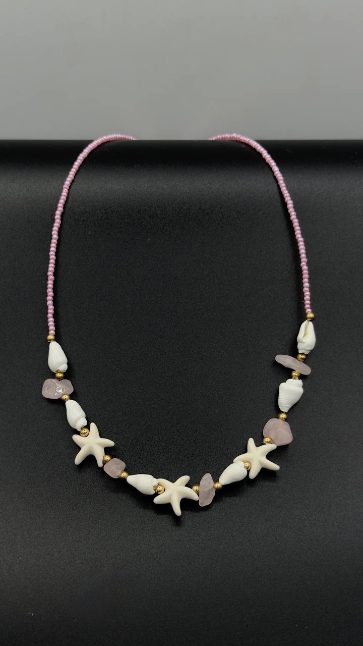گردنبند زنانه صدف و مروارید صورتی سه رج ضد حساسیت
