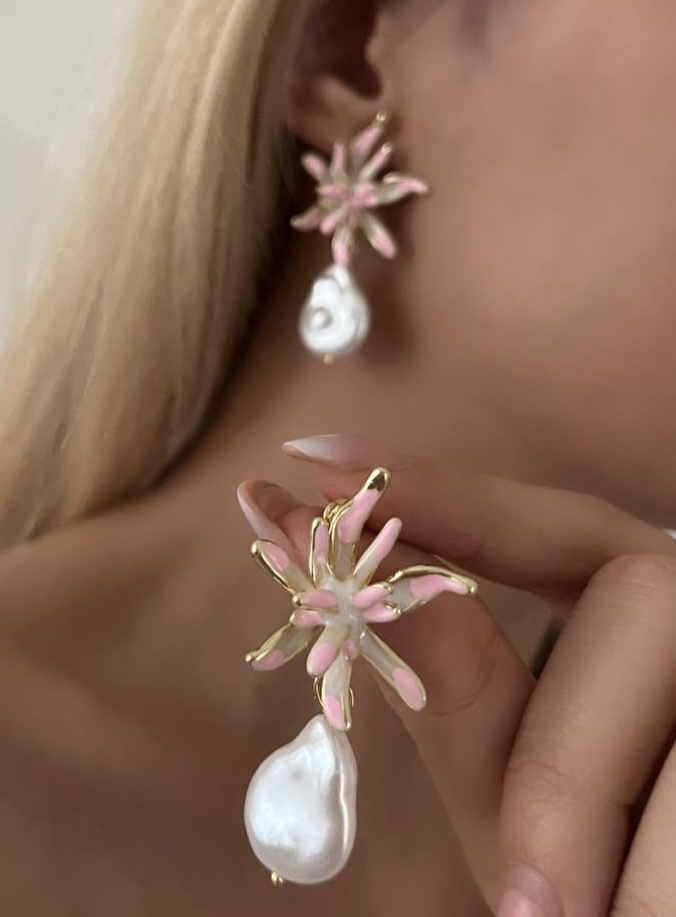 ناموجودگوشواره زنانه شکوفه طلایی با آویز مرواریدی جنس کوپر آبکاری ۳لایه رنگ ثابت ضد حساسیت