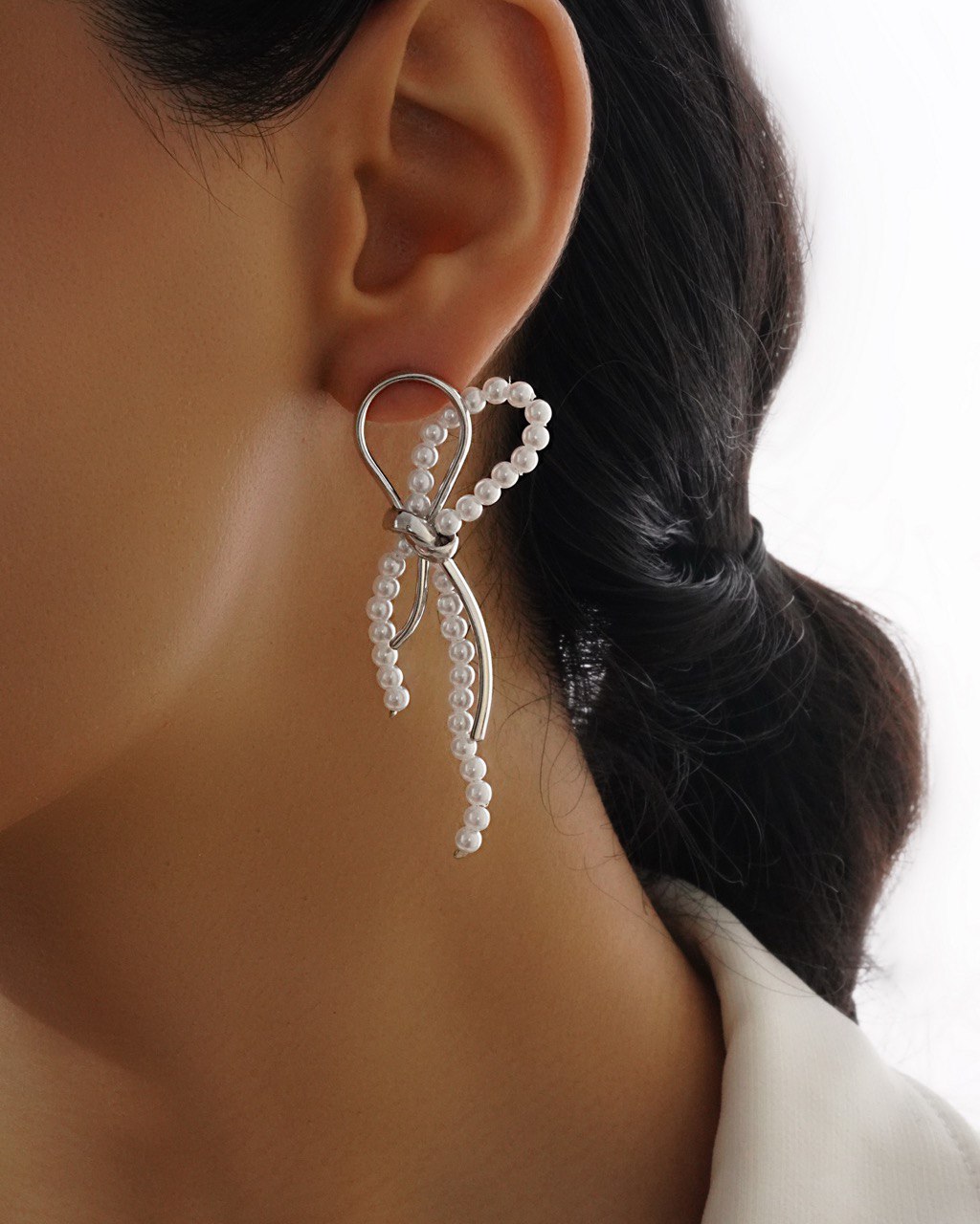 ناموجودگوشواره زنانه آبکاری رادیوم مدل پاپیون با رشته مروارید