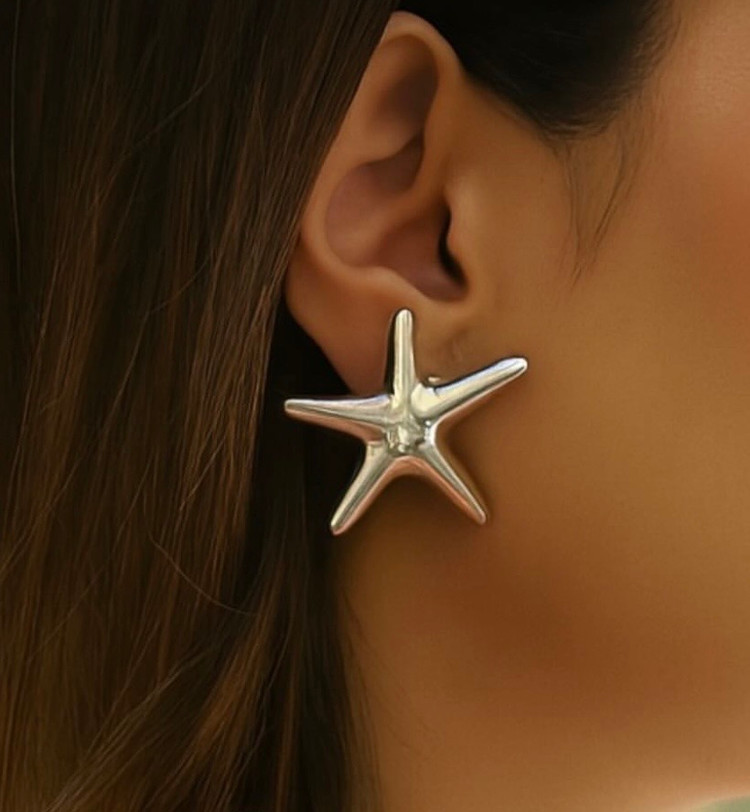 گوشواره زنانه آبکاری رادیوم طرح ستاره ضد حساسیت