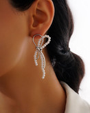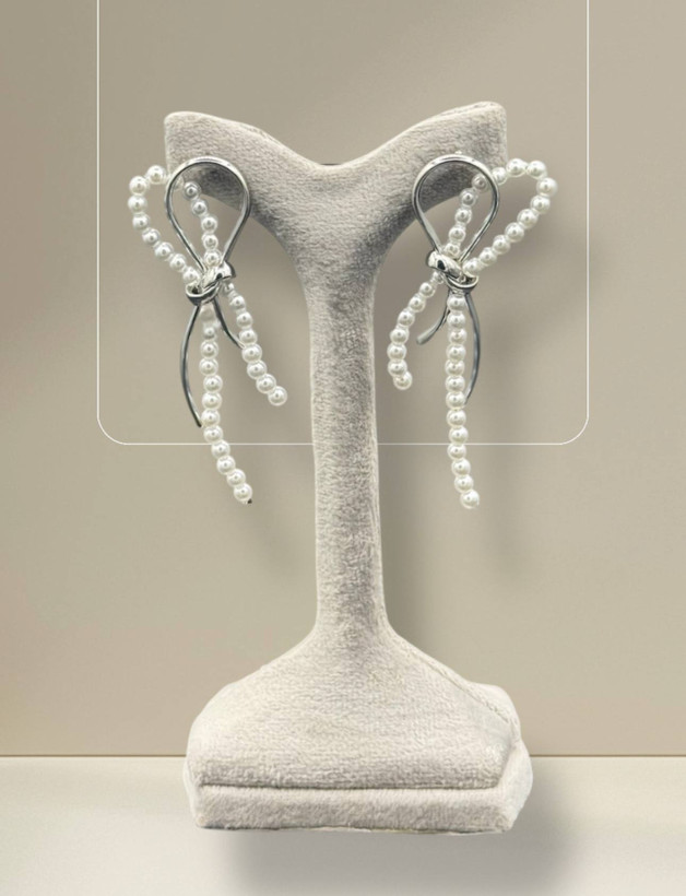 گوشواره زنانه آبکاری رادیوم مدل پاپیون با رشته مروارید