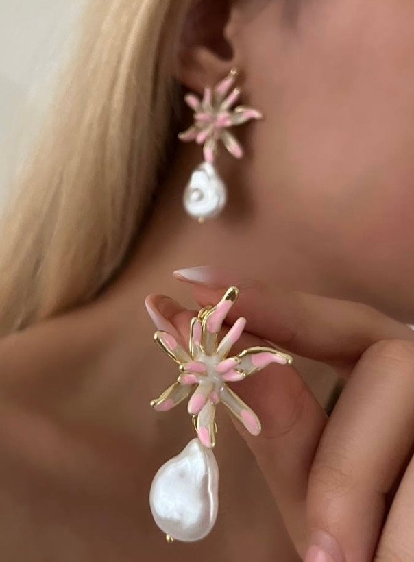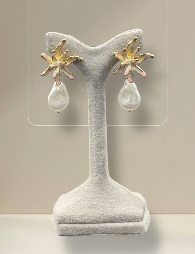 این گوشواره شکوفهای طلایی با آویز مروارید، ترکیبی از ظرافت، درخشش و زیبایی طبیعی برای شما به ارمغان میآورد.