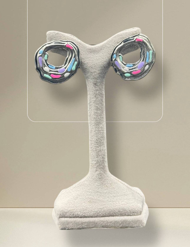 این گوشواره میناکاری، هنر سنتی و جذابیت مدرن را در یک محصول گرد هم آورده است.
