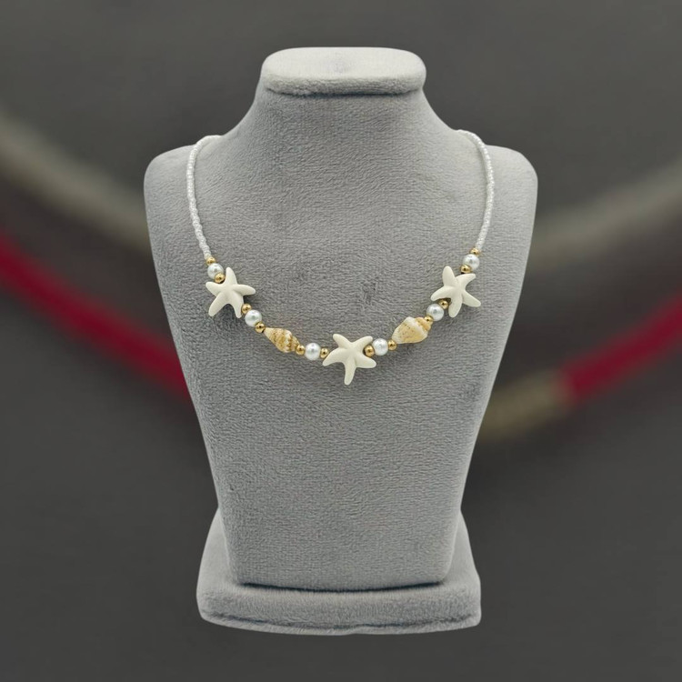 گردنبند زنانه ستاره دریایی سفید با مروارید بسیار شیک